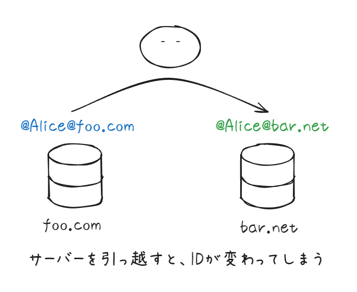 (※ActivityPubでも、解決を転送するサーバーを用意するなどの方法でIDを維持することも可能ですが、現在のところあまり一般的にはなっていないようです。)