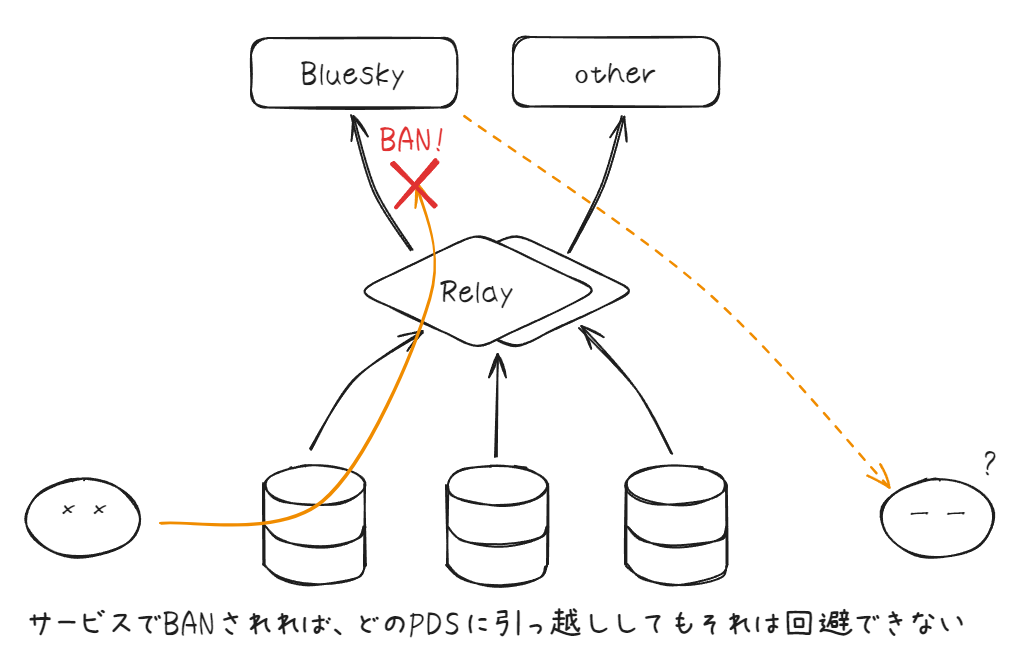 この手法のデメリットは、BlueskyがあなたのアカウントをBanした場合、残されるのはPDSに保存されたデータだけです。これは引っ越しても、BlueskyからBanされていることには変わらないため、別にBlueskyのフォロワーに投稿が引き続き表示されることはなく、「Blueskyとは別の」AppViewから見ることができるというだけです。