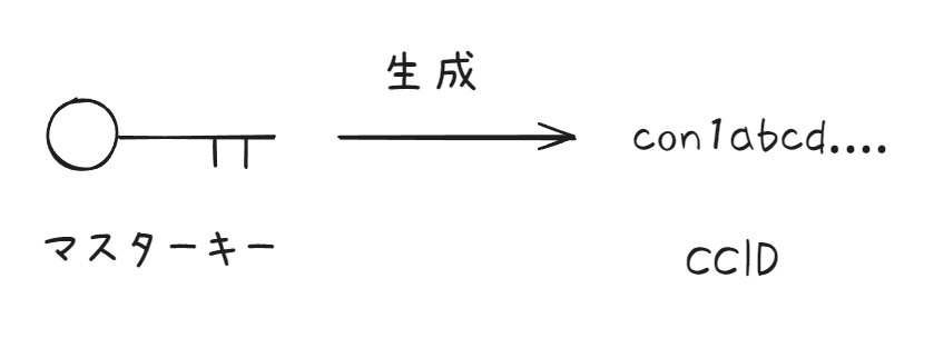 Concrntでは、ユーザーのIDはユーザーの持つ「マスターキー」から生成される「CCID」によって表現されます。(例えば、con1t0tey8uxhkqkd4wcp4hd4jedt7f0vfhk29xdd2)