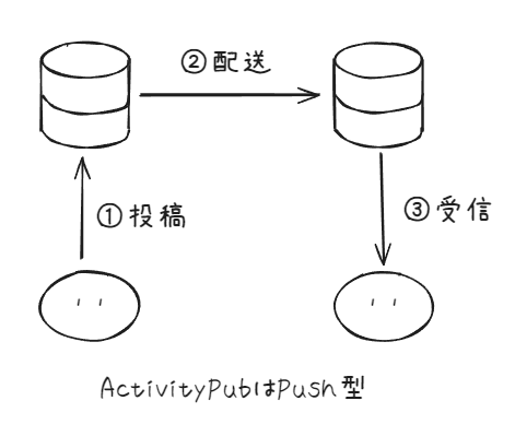Activitypubでは、あるサーバーのユーザーが新しい投稿を行ったとき、そのサーバーはその投稿をフォロワーのサーバーに配送します。